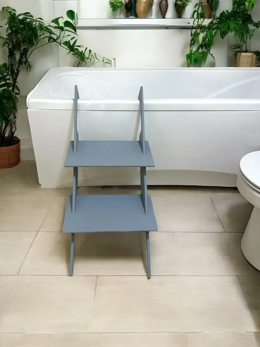Лестница для собак в ванну это – идеальное решение для комфортного и безопасного купания вашего питомца. Эта лесенка для собак оснащена прочными ступенями с шершавой поверхностью, что позволит собаке легко и без стресса подниматься и спускаться избегая скольжения. Серая лестница для собак гармонично впишется в любой интерьер ванной комнаты. Она отлично подходит для средних и крупных пород собак, обеспечивая им надежный спуск из ванны. Пандус в собранном виде имеет размеры: высота 89 см, ширина 40 см, глубина 20 см, что делает его удобным для компактного хранения. Лестница для мытья лап идеально подходит для ванн высотой 55-65 см. Конструкция лестницы надежная и устойчивая, ступеньки выдерживают вес собаки до 60 кг.