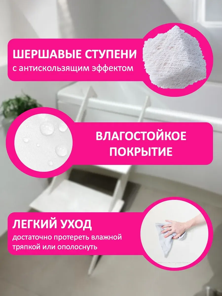 Лестница для собак в ванну это – идеальное решение для комфортного и безопасного купания вашего питомца. Эта лесенка для собак оснащена прочными ступенями с шершавой поверхностью, что позволит собаке легко и без стресса подниматься и спускаться избегая скольжения. Белая лестница для собак гармонично впишется в любой интерьер ванной комнаты. Она отлично подходит для средних и крупных пород собак, обеспечивая им надежный спуск из ванны. Пандус в собранном виде имеет размеры: высота 90 см, ширина 40 см, глубина 20 см, что делает его удобным для компактного хранения. Лестница для мытья лап идеально подходит для ванн высотой 55-65 см. Конструкция лестницы надежная и устойчивая, ступеньки выдерживают вес собаки до 60 кг.