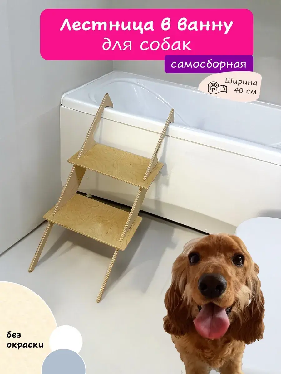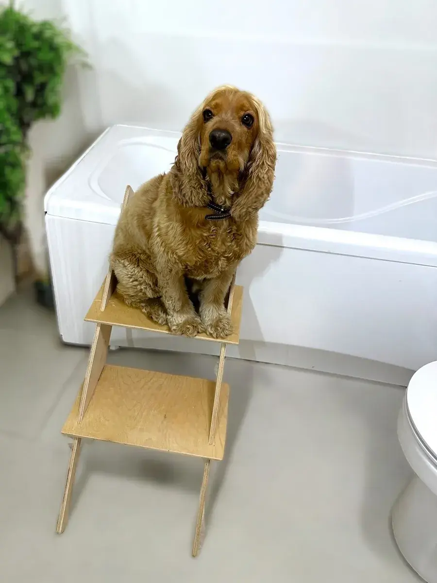 Лестница для собак в ванну это – идеальное решение для комфортного и безопасного купания вашего питомца. Эта лесенка для собак оснащена прочными ступенями с шершавой поверхностью, что позволит собаке легко и без стресса подниматься и спускаться избегая скольжения. Деревянная лестница для собак гармонично впишется в любой интерьер ванной комнаты. Она отлично подходит для средних и крупных пород собак, обеспечивая им надежный спуск из ванны. Пандус в собранном виде имеет размеры: высота 89 см, ширина 40 см, глубина 20 см, что делает его удобным для компактного хранения. Лестница для мытья лап идеально подходит для ванн высотой 55-65 см. Конструкция лестницы надежная и устойчивая, ступеньки выдерживают вес собаки до 60 кг.