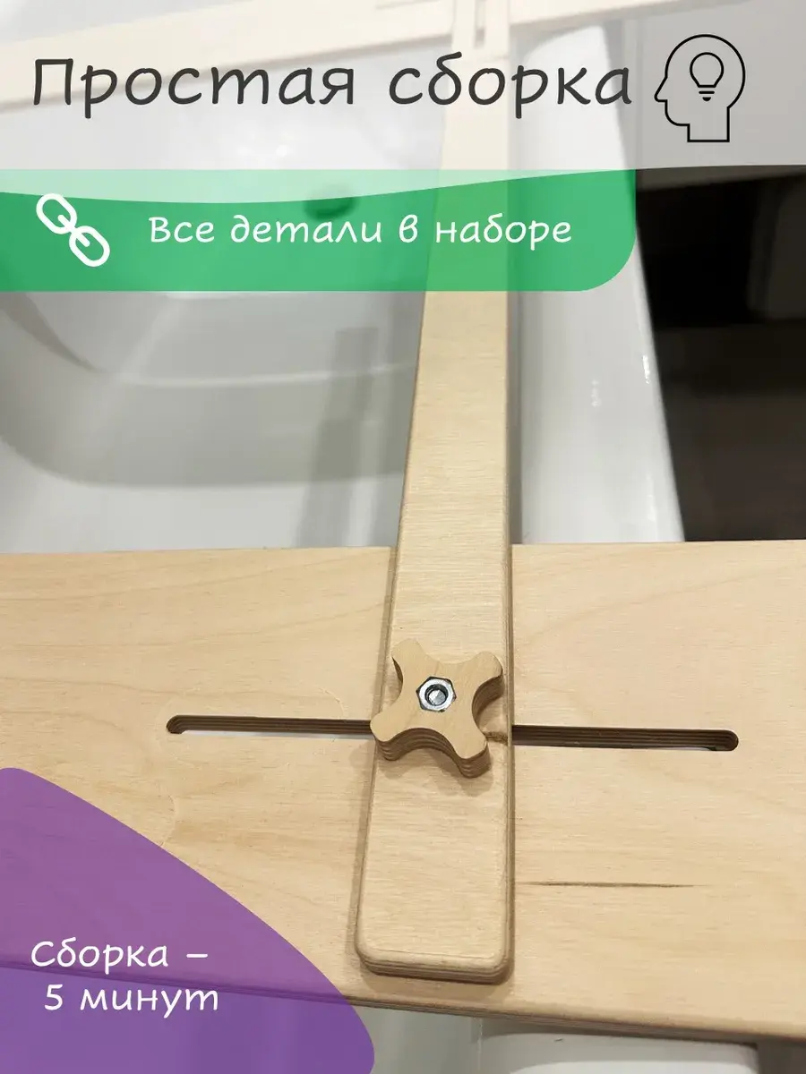 Подставка под ванночку подходит для ванн с шириной до 80 см от бортика до бортика по внешнему краю. Деревянная подставка под детскую ванночку имеет прочную и надежную конструкцию, выдерживающую нагрузку до 80 кг. Деревянная решетка на ванну изготовлена из высококачественного экологически чистого дерева с масляным покрытием.